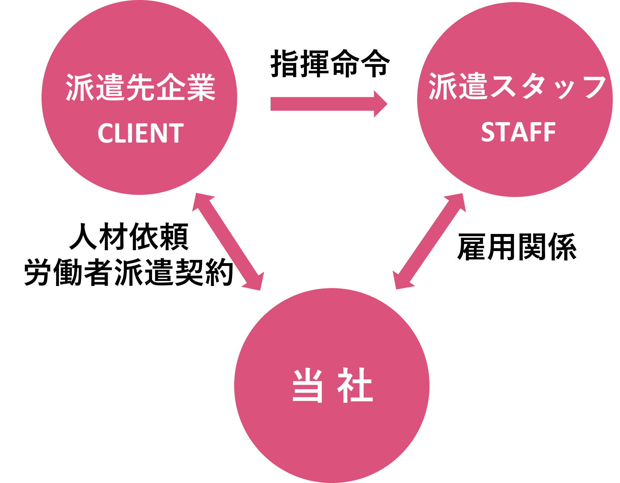 人材派遣とは「労働者派遣法」という法律に基づき、派遣会社が雇用する労働者を派遣先の指揮命令を受けて労働させることをいいます。